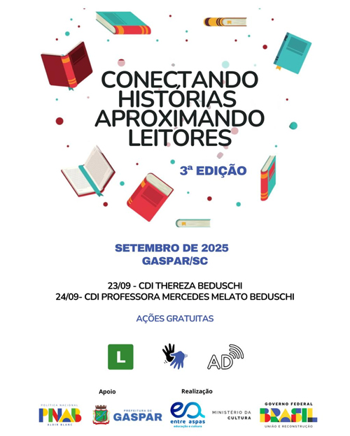 Nos dias 23 e 24 de setembro, Gaspar recebe a 3ª edição do projeto Conectando Histórias, Aproximando Leitores, iniciativa dedicada à mediação literária e à valorização da literatura infantil como ferramenta de inclusão e acesso cultural. A ação, coordenada pela Dra. em Educação Maria Laura Pozzobon Spengler, promove encontros de leitura, apresentações e desdobramentos da […]