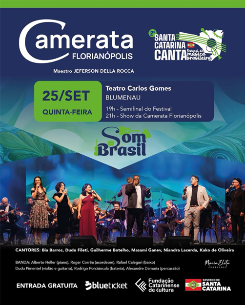 A cidade de Blumenau será palco de uma noite inesquecível com o espetáculo Som Brasil, da Camerata Florianópolis, nesta quinta-feira, 25 de setembro, no Teatro Carlos Gomes. A apresentação integra a programação do Festival Santa Catarina Canta, que celebra a música e os talentos do estado. Sob a regência do maestro Jeferson Della Rocca, a […]
