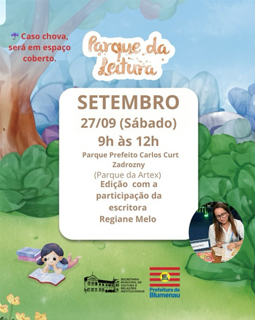 O Parque da Leitura está de volta e promete uma manhã especial dedicada às palavras, à imaginação e ao encontro com a literatura. No próximo sábado, 27 de setembro, das 9h às 12h, o Parque da Artex (Prefeito Carlos Curt Zadrozny) será o cenário para essa experiência cultural gratuita e aberta à comunidade. A edição […]