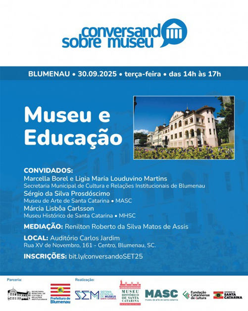 A Secretaria Municipal de Cultura e Relações Institucionais (SMC) de Blumenau, por meio da Diretoria de Patrimônio Histórico e Museológico, promoverá o ciclo de discussão “Conversando sobre Museu”, com foco no tema “Museu e Educação”. O evento busca fomentar reflexões sobre a importância das práticas educativas e a presença dos museus como ferramentas de ensino. […]