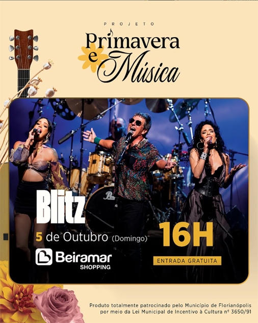Prepare-se para cantar e reviver grandes sucessos do rock nacional! A lendária banda Blitz estará em Florianópolis com a turnê “Blitz, Agora é a Hora”. O show, que promete uma tarde de muita música e nostalgia, acontece no domingo, 05 de outubro de 2025, às 16h, no Palco à Beiramar no Beiramar Shopping.