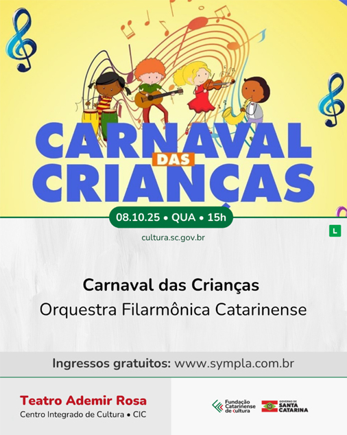 Orquestra Filarmônica Catarinense (OFiC) apresenta o lúdico “Carnaval das Crianças” no CIC em Florianópolis