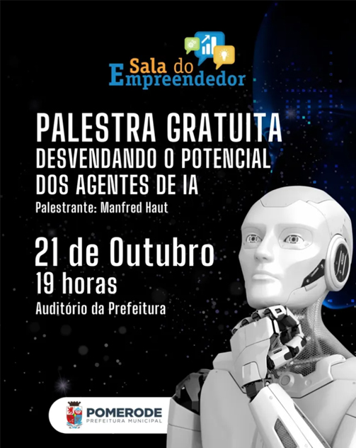 Em uma iniciativa voltada para a inovação e o desenvolvimento profissional, a Prefeitura de Pomerode receberá a palestra gratuita “Desvendando o Potencial dos Agentes de IA”. O evento acontecerá no dia 21 de outubro, às 19h, no Auditório da Prefeitura com o palestrante Manfred Haut. A palestra é direcionada a empreendedores, profissionais liberais e servidores […]