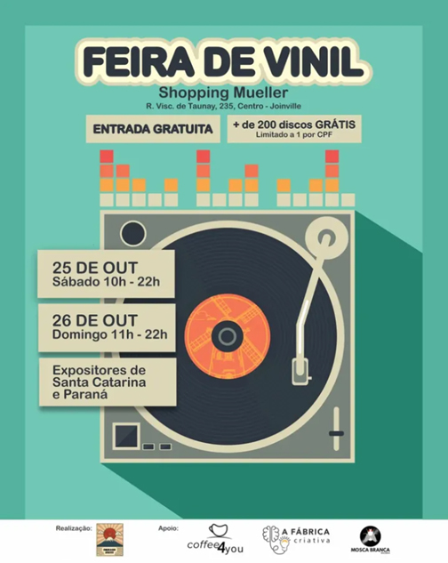 Uma excelente notícia para os apreciadores de discos de vinil! A Feira de Vinil está de volta e acontecerá nos dias 25 e 26 de outubro na praça central do Shopping Mueller Joinville. O evento, que celebra o formato analógico, contará com a presença de diversos expositores de Santa Catarina e Paraná. Juntos, eles trarão […]