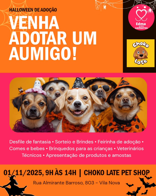 Prepare-se para um dia incrível e cheio de amor! O Choko Late Pet Shop em parceria com Edma Seus Cachorros será palco do “Halloween de Adoção” no dia 01 de novembro, das 9h às 14h. O evento tem como objetivo principal encontrar lares amorosos para muitos cães lindos. O Halloween de Adoção contará com uma […]