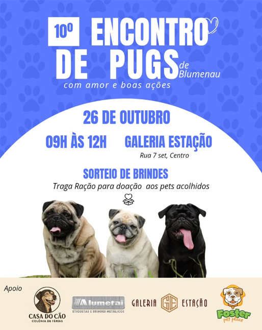 O tradicional Encontro de Pugs de Blumenau celebra sua 10ª edição neste domingo, 26 de outubro, na Galeria Estação. O evento, que começou como uma reunião de amigas, transformou-se na maior corrente de solidariedade pet da região, com mais de uma tonelada de alimentos e itens já arrecadados. Apesar do nome, o Encontro é aberto […]
