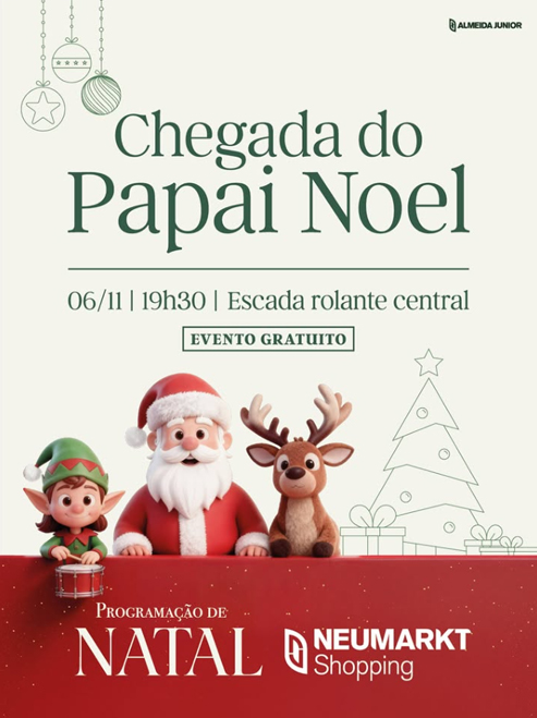 Embora ainda estejamos em outubro, o espírito natalino já está no ar, e o Neumarkt Shopping anuncia a chegada de seu convidado mais esperado: o Papai Noel. O bom velhinho fará sua entrada triunfal no dia 06 de novembro, às 19h30, marcando oficialmente o início da temporada mágica de Natal. O momento promete ser inesquecível, […]