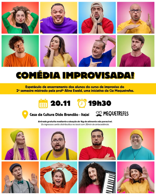 Prepare-se para uma noite de risadas e espontaneidade! Cia Maquetrefes promove o espetáculo “Comédia de Improviso”, marcando o encerramento do 2º semestre dos alunos do curso.