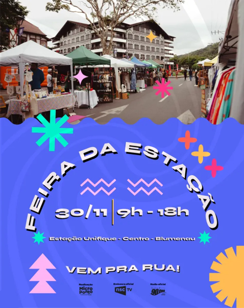 O centro de Blumenau será novamente tomado pela criatividade e cultura com a Feira da Estação, em uma edição especial com horário estendido. O evento acontecerá neste domingo, 30 de novembro, e reunirá 40 feirantes com o melhor da arte, sabores e economia criativa local.