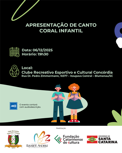 Proposta Cultural realizada com recursos do Governo do Estado de Santa Catarina, pela Fundação Catarinense de Cultura [FCC], por meio do Prêmio Elisabete Anderle de Estímulo à Cultura – Edição 2024. Acompanhe as novidades pelo www.instagram.com/clubeconcordiaitoupava