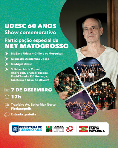 A Udesc (Universidade do Estado de Santa Catarina) celebrará seu aniversário de 60 anos com um grande show gratuito e aberto à comunidade na Avenida Beira-Mar Norte no dia 7 de dezembro. O evento terá como ponto alto a participação especial do ícone da música brasileira, Ney Matogrosso.