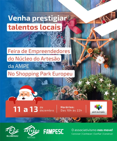 Em preparação para a época festiva, o Núcleo do Artesão da AMPE Blumenau promoverá uma feira especial de Natal, repleta de criatividade, afeto e produtos feitos à mão. A feira é uma excelente oportunidade para o público encontrar presentes únicos e apoiar o trabalho dos artesãos locais.