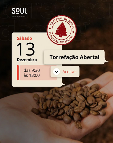 A última edição da Torrefação Aberta da Soul Cafés & Companhias de 2025 está chegando, prometendo fechar o ano com um aroma especial de festa e café de alta qualidade. O evento acontecerá neste sábado, 13 de dezembro, das 9h30 às 13h.