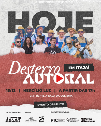 📍 Local: Em frente à Casa da Cultura Didi Brandão – Rua Hercílio Luz – Itajaí/SC