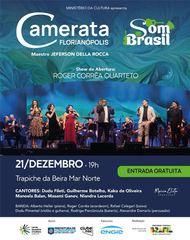 Para celebrar o encerramento do ano, a Camerata Florianópolis apresenta o espetáculo “Som Brasil” neste domingo, 21 de dezembro, às 19h. O evento gratuito será realizado no Trapiche da Beira-Mar Norte e promete uma imersão na diversidade da música brasileira.