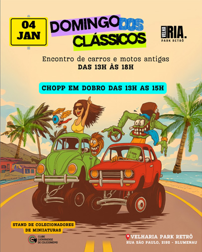 O Velharia Park Retrô abre o calendário de eventos do ano com o tradicional Domingo dos Clássicos, encontro de motos e carros antigos que acontece neste domingo, 04 de janeiro. O evento, que promete um dia repleto de nostalgia e amizade, será realizado das 13h às 18h.