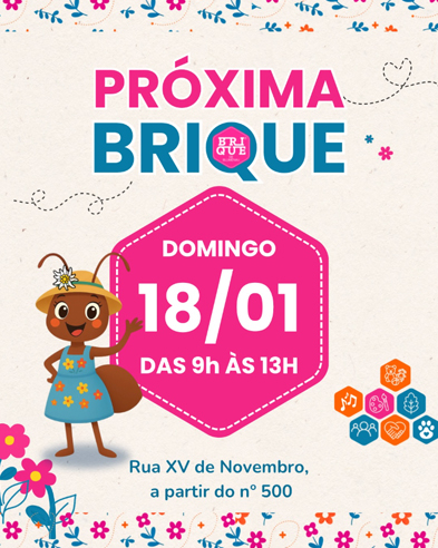 A tradicional feira de rua Brique retorna neste domingo, 18 de janeiro de 2026, para sua primeira edição do ano. O evento ocorre das 9h às 13h, ocupando a Rua XV de Novembro, a partir do número 500, no coração do Centro de Blumenau.