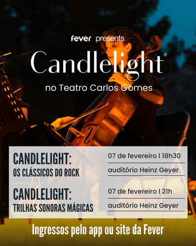 Ingressos As entradas já estão disponíveis para compra através do site ou aplicativo da Fever, realizadora do evento. Informações complementares podem ser consultadas na aba de programação do site oficial do Teatro Carlos Gomes ou no perfil oficial @candlelight.concerts.
