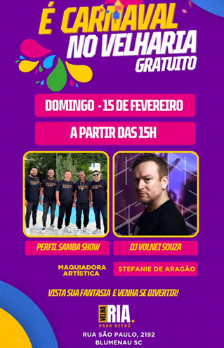 Velharia Park Retrô promove tarde de Carnaval gratuita com samba e marchinhas em Blumenau