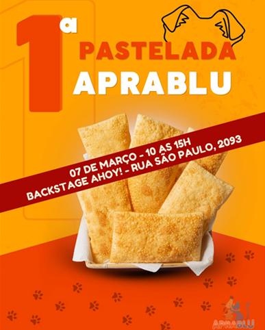 No próximo sábado, dia 07 de março, a APRABLU promove a primeira edição de sua Pastelada, um evento que une gastronomia e solidariedade. A ação acontece das 10h às 15h no espaço do Backstage Ahoy, contando com a parceria da Vottri Congelados e da Animal Farma.