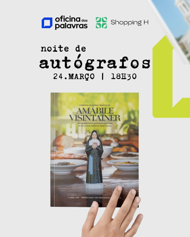 No dia 24 de março (terça-feira), o Shopping H, em parceria com a Oficina das Palavras, promove uma noite de autógrafos e bate-papo com os autores Ana Paula Ruschel e Ricardo Ruas. O evento, focado no livro “Caminhos, memórias e histórias de Amábile Visintainer”, acontece das 18h30 às 21h, no Centro de Blumenau.