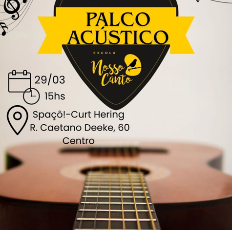 A tarde deste domingo, 29 de março, será embalada por acordes e vozes no coração da cidade. A partir das 15h, a escola de música Nosso Canto realiza o evento Palco Acústico, no Spaçô!, localizado no centro de Blumenau. O encontro é aberto ao público e promete um repertório selecionado com “bom gosto” para celebrar a arte e a educação musical.