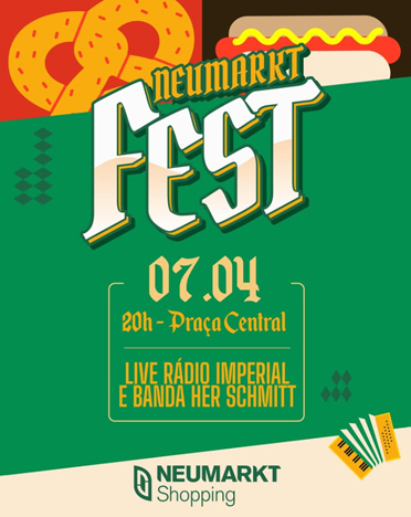 O coração da tradição germânica bate mais forte no Neumarkt Shopping nesta terça-feira, 07 de abril. A partir das 20h, o empreendimento se transforma em um verdadeiro palco da cultura alemã com a realização da Noite Alemã, uma edição especial da Live Kerbfest Imperial.