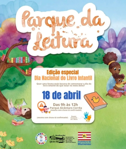 No próximo sábado, 18 de abril, o Parque Alcântaro Corrêa (Parque das Itoupavas) se transforma em um grande refúgio literário ao ar livre. Das 9h às 12h, acontece uma edição comemorativa do projeto Parque da Leitura, desta vez em homenagem ao Dia Nacional do Livro Infantil.