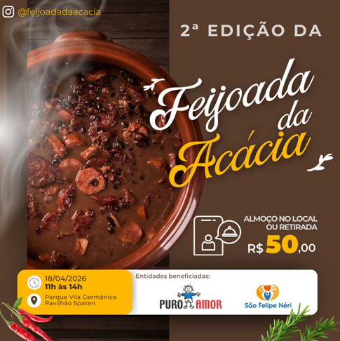 O Pavilhão Spaten, na Vila Germânica, será o ponto de encontro da solidariedade no próximo sábado, 18 de abril. A partir das 11h, acontece a 2ª edição da Feijoada Beneficente da Acácia, um evento que une a tradicional gastronomia brasileira ao compromisso social, com o objetivo de arrecadar fundos para causas fundamentais da cidade.